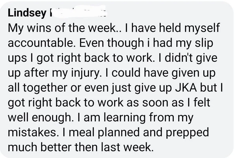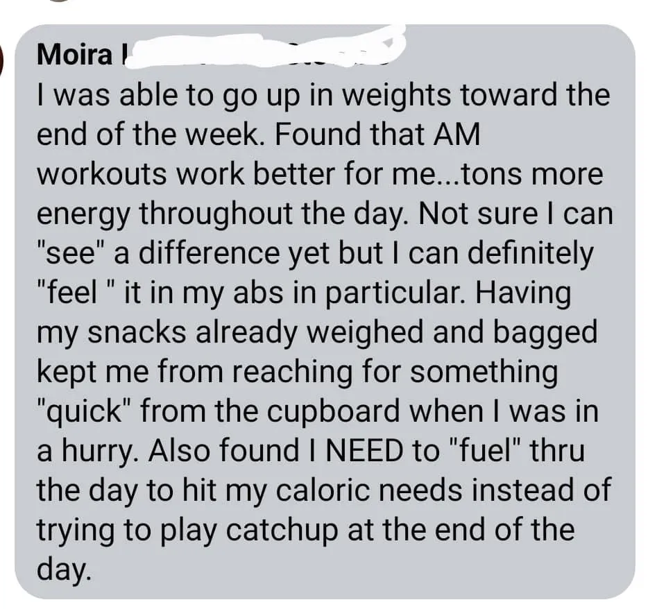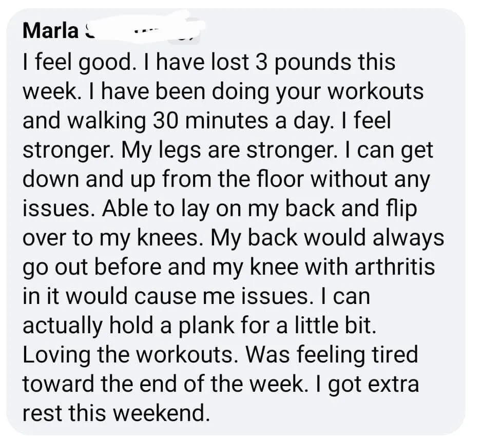 Complete each of the workouts check in with the community each day for accountability. Let the group know what you thought, how you felt, and what weights you used. Celebrate yourself and give praise to others who complete the workout too!