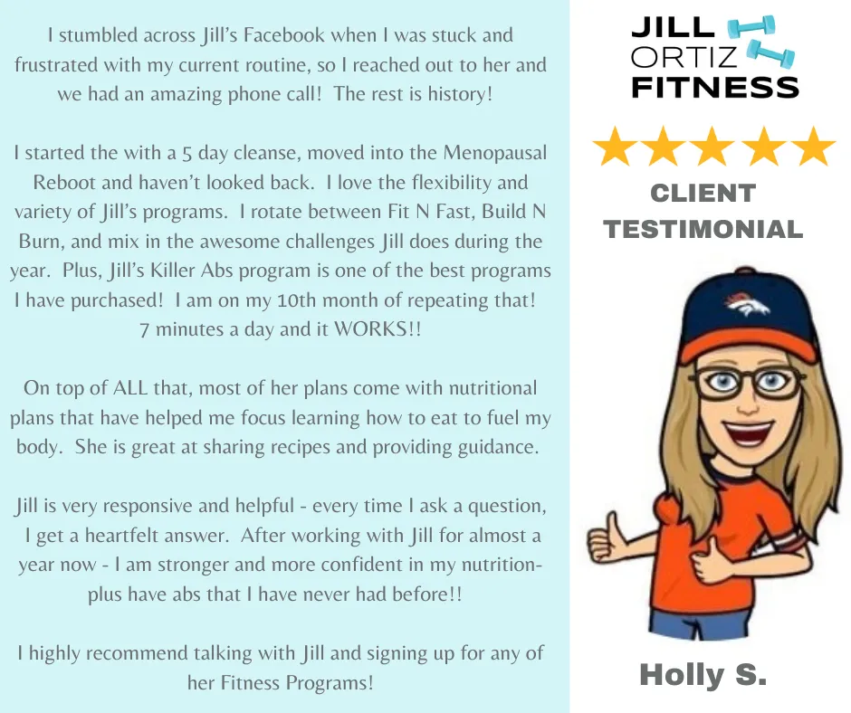 Users of our products, services and web site are advised to do their own due diligence when it comes to making decisions and all information, products, and services that have been provided should be independently verified by your own qualified professionals. Our information, products, and services should be carefully considered and evaluated, before reaching a decision on whether to rely on them. You agree that our company is not responsible for the success or failure of your decisions relating to any information presented by JILL ORTIZ FITNESS or our company products or services.